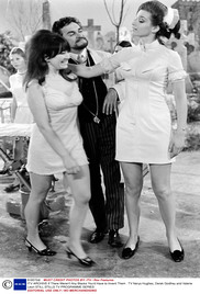 During the shooting of a horror movie, an eccentric B-movie producer inadvertently summons a demon.